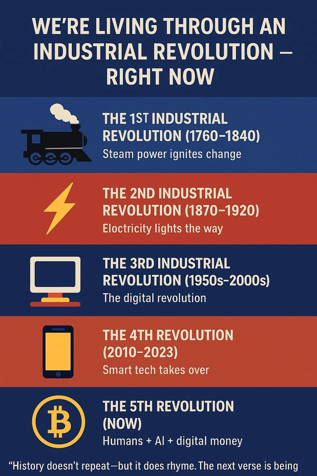 AI, digital currencies, and human ingenuity are driving the industrial revolution. Learn how Bitcoin fits in this global transformation, and why it's important to embrace change (Rochester NY Bitcoin Education).